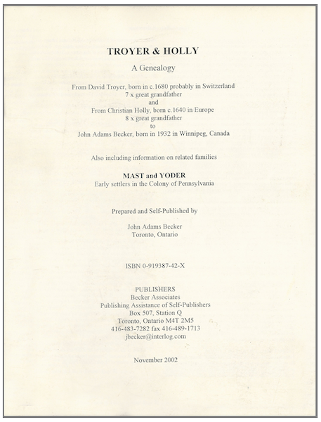 Troyer and Holly: A Genealogy